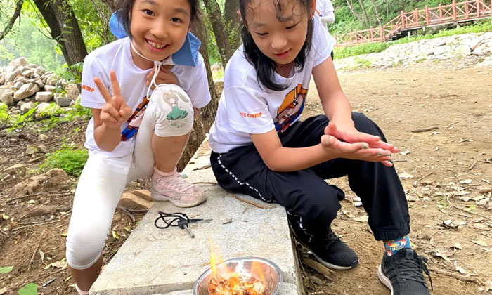 寻找取火工具和材料,学习钻木取火、凸镜、打火棒等多种取火技能,利用多种方式生火。