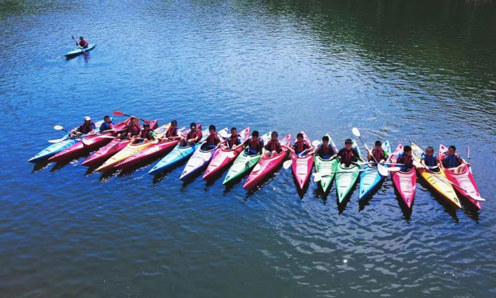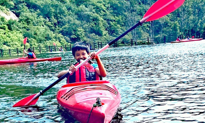 皮划艇是奥运会的比赛项目之一,作为一种对人体有益的运动,考验速度与耐力,兼具竞技性和趣味性。营地自有的皮划艇基地,30亩湖水清澈平缓。漫漂于湖中,远眺群山环抱,赏心悦目。在水天一色间,让孩子挥动船桨、拨动浪花,锻炼得健康而又结实。
