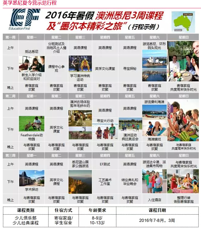 2)在课堂上,搭配由英孚教育委员会及世界语言教学协会共同研发的英孚Fast Track英语教材,以及我们的创新技术——英孚Efekta™ 学习系统,并且通过英孚学习护照追踪学习进度;课后,通过多样的实践活动给孩子学以致用的机会,共同助力孩子在实用语言技能上的提升!我们还提供英孚在线校园My EF,让孩子在结束游学后仍然能够继续学习,并与各地朋友保持联系。
