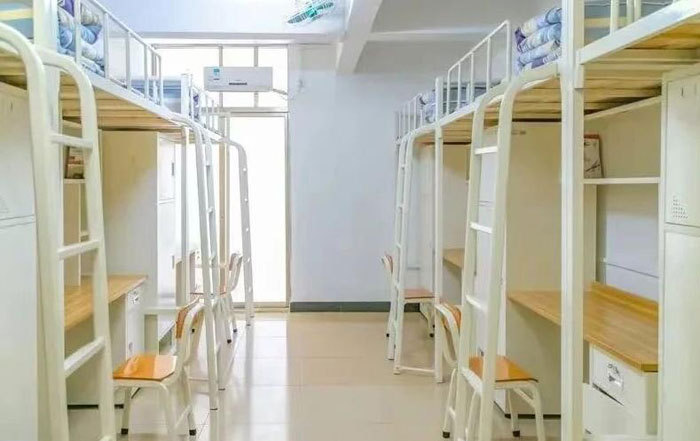住宿标准:6人一间宿舍,提供空调,两个独立卫浴,高低铺,蹲便,女生为独立的宿舍环境。