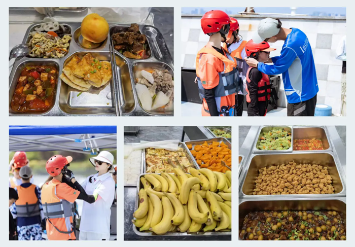 餐饮标准:营地餐饮从食材采购到储存加工,每一环节都严格把控保证食品的新鲜、卫生,精心调配菜肴,荤素搭配,确保营养均衡。