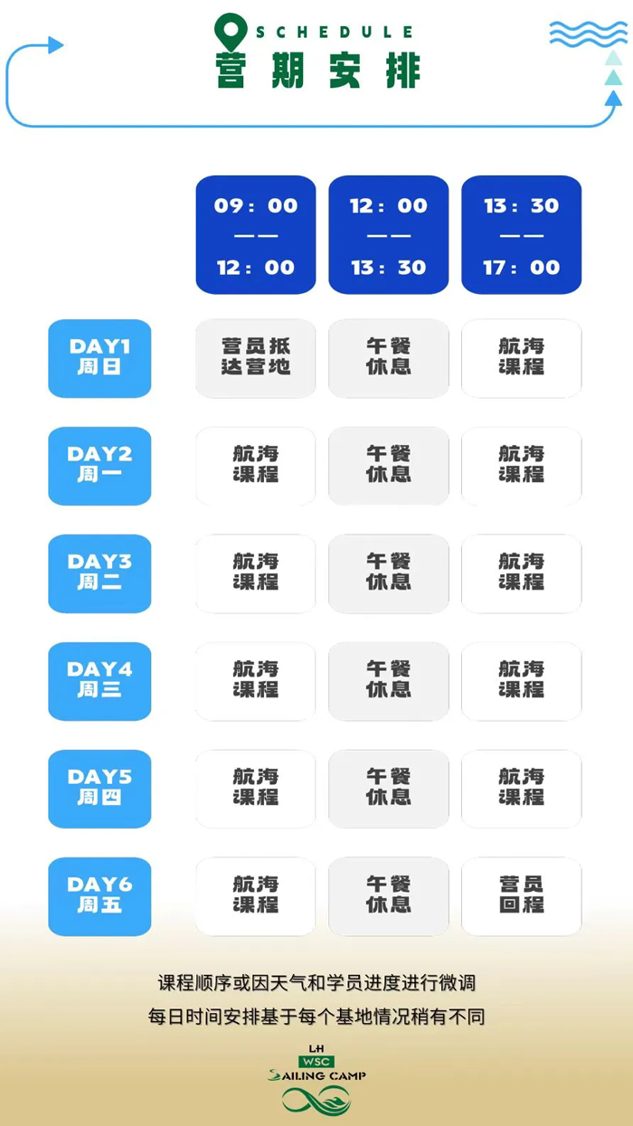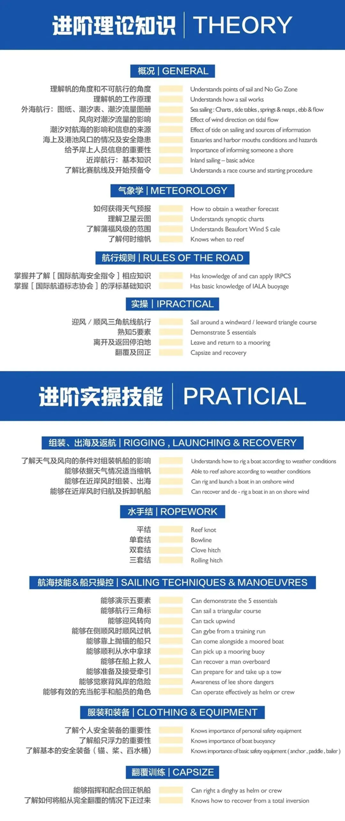 2.参营保险、帆船驾驶安全装备(头盔、救生衣)使用、教材(初次参营)、等级证书;