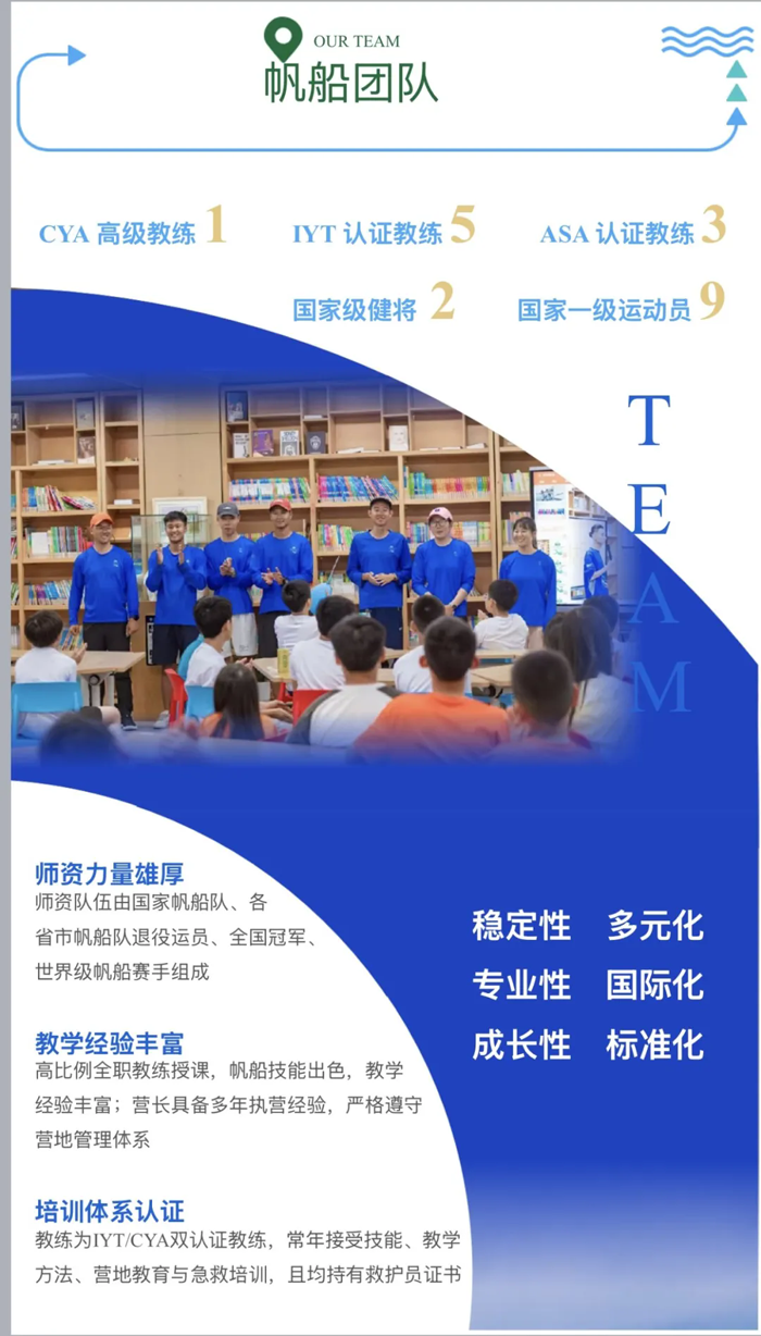 GOODCAMP帆船学院,是华东地区官方认证的IYT培训基地,师资队伍由国家帆船队、各省市帆船队退役运动员组成,包含数名全国冠军、世界级帆船赛手,帆船技能出色、教学经验丰富。
