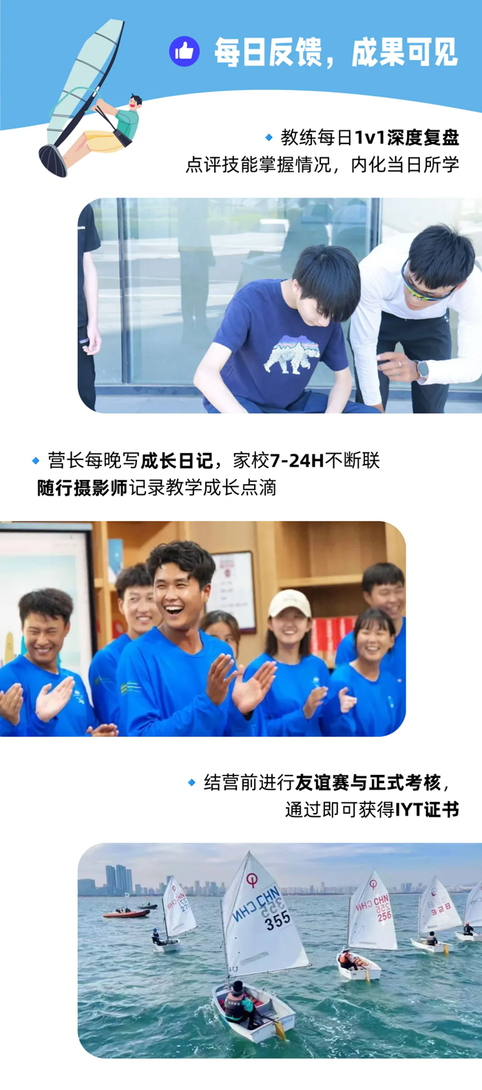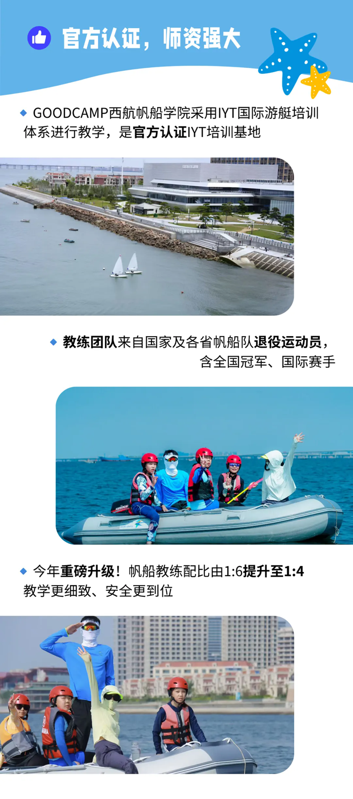 师资配比:帆船教练配比1:4