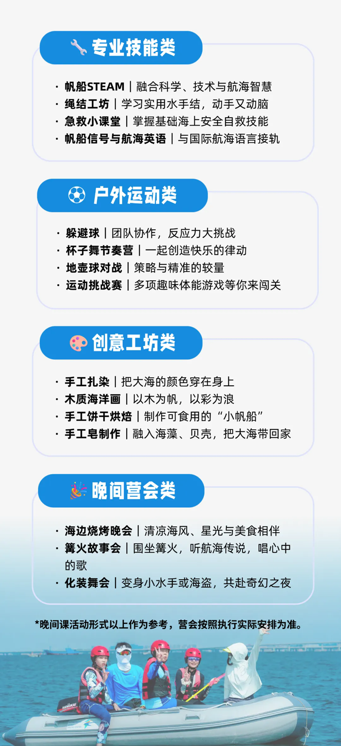 营会具体课程内容执行会根据实际情况酌情合理调整,课程安排参考如下: