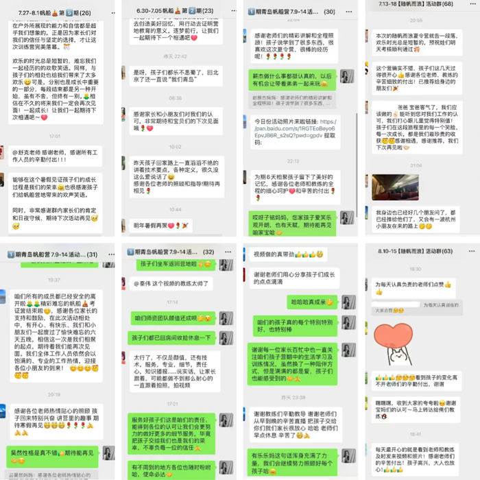 想知道GOODCAMP帆船营到底怎么样?最好的反馈,藏在孩子的笑容和家长的信任里。不如听听往期参会小朋友的爸爸妈妈们怎么说👇: