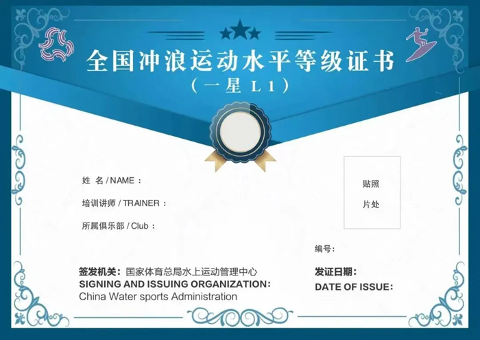 结营若达成全部技能指标,会为孩子们颁发由国家体育总局水上运动管理中心官方制证、发证、具备全国唯一可查编号的《全国冲浪运动水平等级证书》。