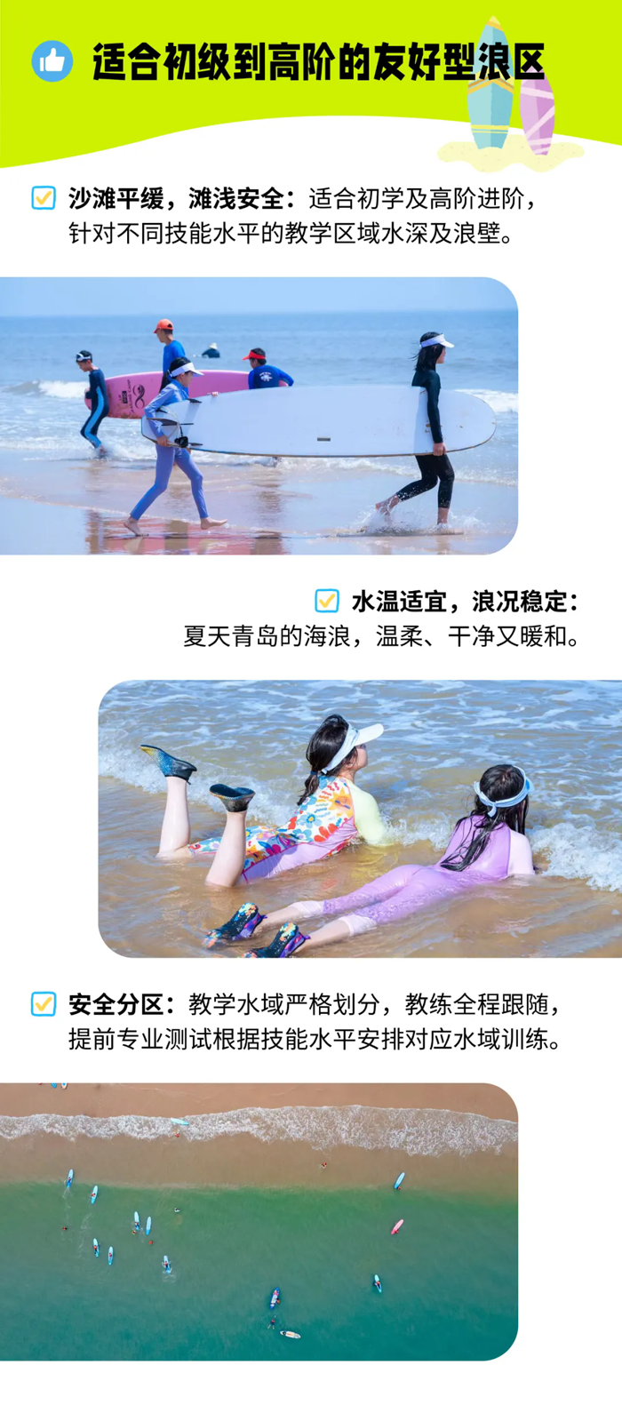 夏季是冲浪的黄金季节!在冲浪爱好者中流传着“夏季冲青岛,冬季冲海南”的说法,因此我们本次冲浪课堂地点选在青岛。