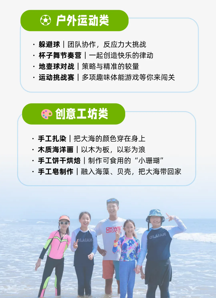 开营之夜,围坐破冰,在手账本里写下故事的开始;钻进手工坊,把海风带来的灵感做成小物件;夜幕作幕布,躺在沙滩看一场露天电影;地壶球、射箭、攀岩轮番挑战;围炉分享,从陌生到不舍……