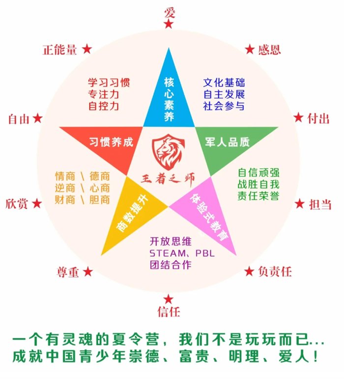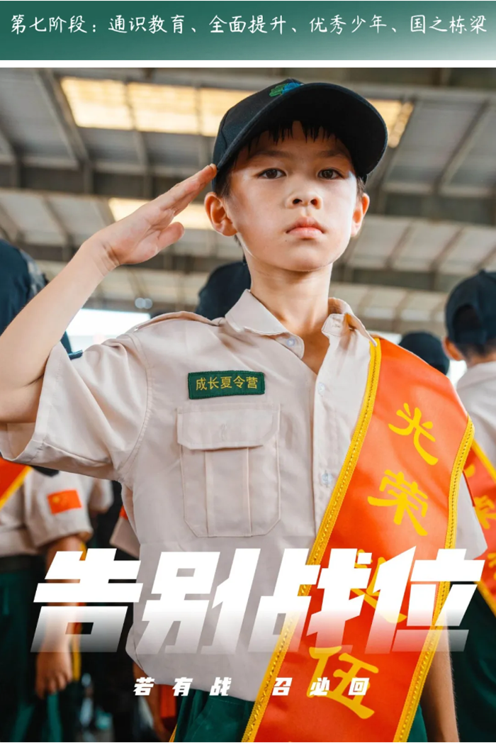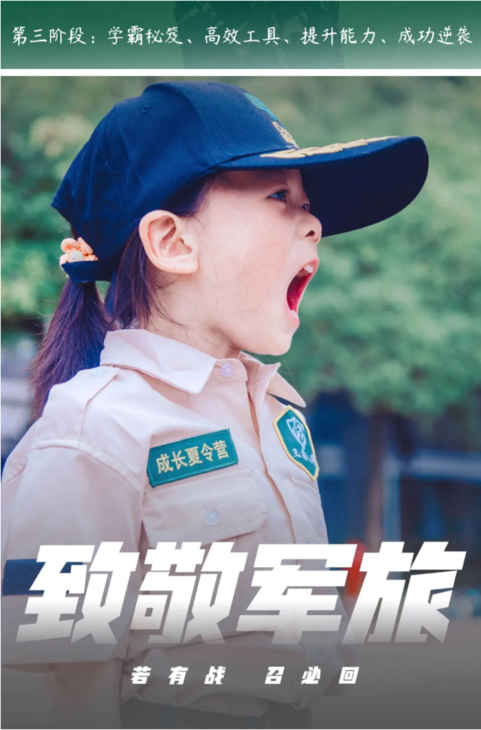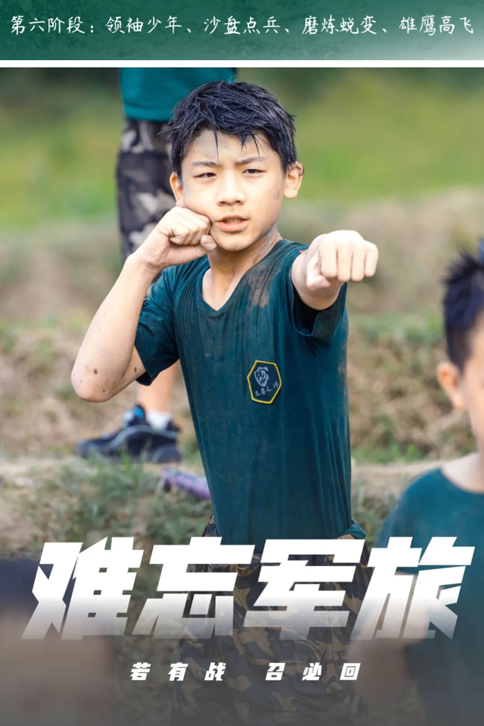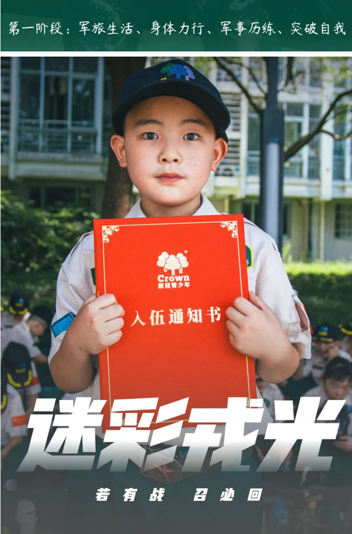阶段目标:新人入伍,逐步适应严肃紧张的军营生活,培养军事素养,掌握军事技能,学习当代军人的雷厉风行,让孩子们建立良好的时间观、纪律观、荣誉观,改变孩子懒散、拖延等各种不良习惯,规范行为习惯,加强自我管理能力。