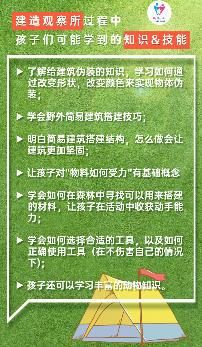 从每一块木材的搬运、切割、装订,到墙面、树叶的搭建拼装成完整观察所,孩子们亲身参与全过程,这是从无到有,由点及面的完整建筑过程,在这个过程中孩子们可以得到多方面的锻炼。