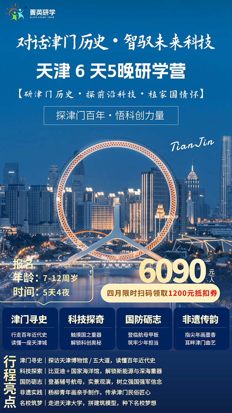 “天津之心”津塔观光厅 ,坐落于天津环球金融中心(津塔 )336.9 米的79 至80 层 ,是华北首个 300 米以上的城市高空观景平台。它如同一颗悬浮于城市之巅的璀璨心脏 ,以 360 度环形玻璃幕墙 ,为学子们打开了一部立体的城市教科书。