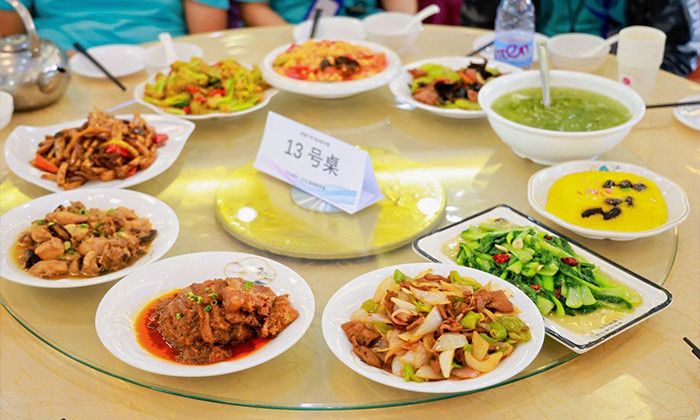 餐饮标准:桌餐,荤素搭配,营养均衡。