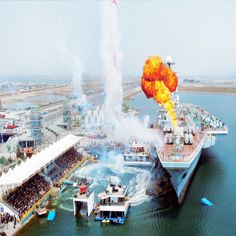 观看飞车特技 ,顶尖车手秀漂移、穿建筑 ,伴震撼爆炸特效 ,车技惊险 ,实景观演速度与激情。