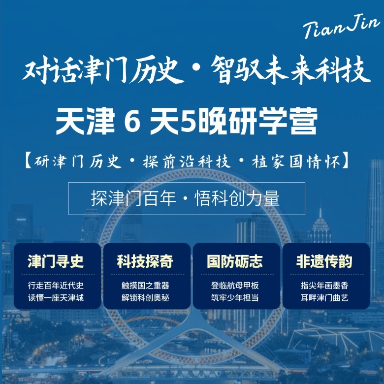 在这里 ,蜿蜒的海河、百年风情的五大道、见证历史的解放桥与现代的津湾广场构成一幅“一眼千年”的时空画卷。观光厅不仅是一个观景台 ,更是一个融合了“高空观景、文化磁场、城市客厅”的多元空间 ,内部设有四大主题文化展览 ,从艺术、摄影、历史、建筑等多维度解读天津。登临“天津之心” ,是一次从云端俯瞰城市肌理、触摸历史文脉、感受发展脉搏的沉浸式研学之旅。