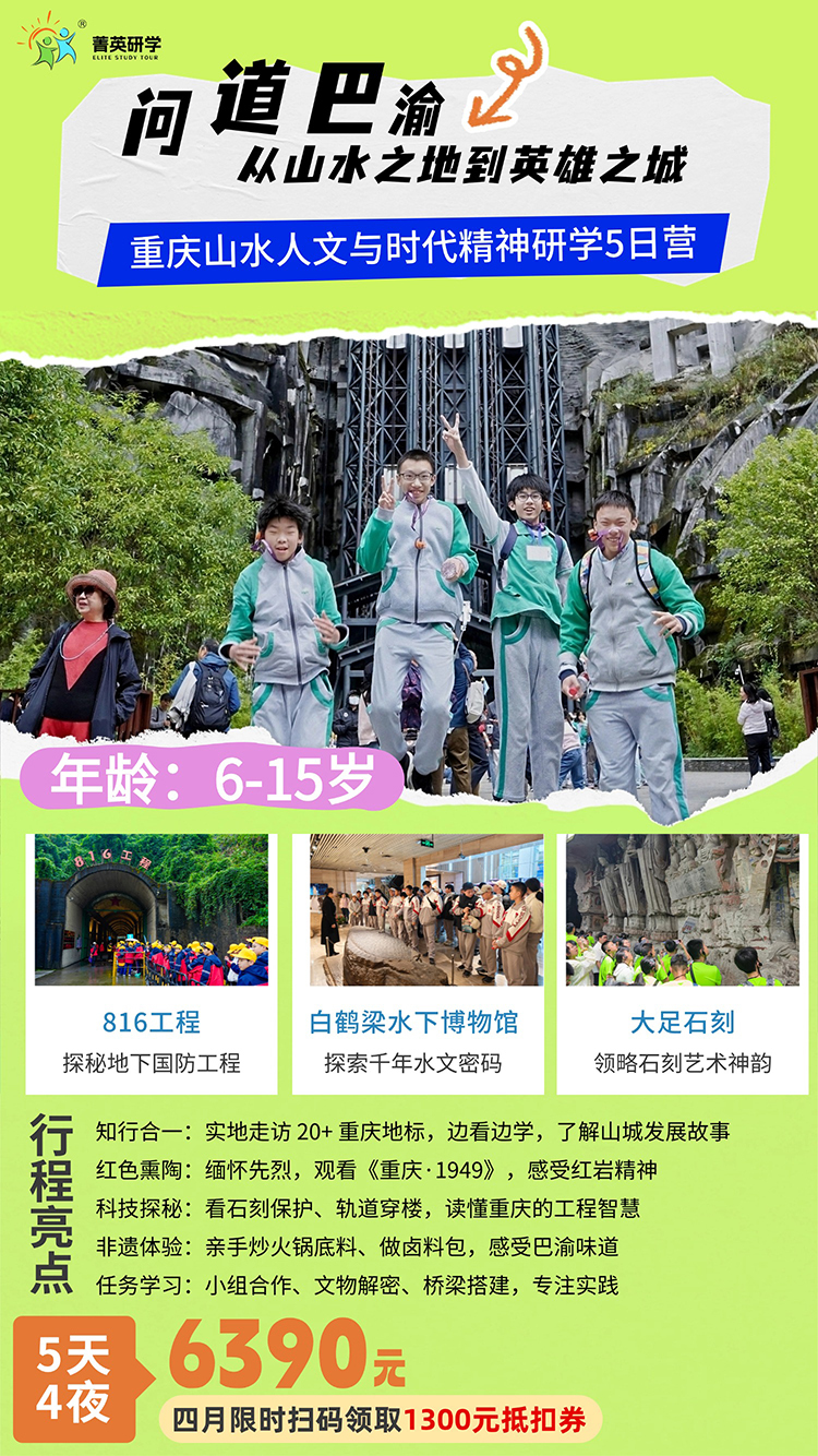 本研学方案秉承“知行合一、境教融合”的核心教育理念,让学习发生在真实的情境与深度的体验之中。课程以重庆独特的自然地理与人文历史为天然课堂,打破学科壁垒,设计多层次、探究式的学习任务。通过实地考察、任务驱动、动手实践与反思研讨,引导学生从被动接收转为主动建构,在感知山城立体空间、追溯红色革命足迹、解密古代石刻科技、体验非遗火锅制作、探访现代桥梁工程的过程中,实现知识获取、能力提升与价值塑造的同步生长,最终培养其家国情怀、科学精神、文化自信与综合实践能力。