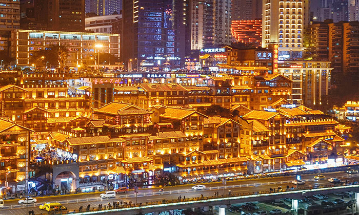 3.欣赏洪崖洞夜景,灯火璀璨如《千与千寻》的奇幻之境,感受山城立体空间智慧。