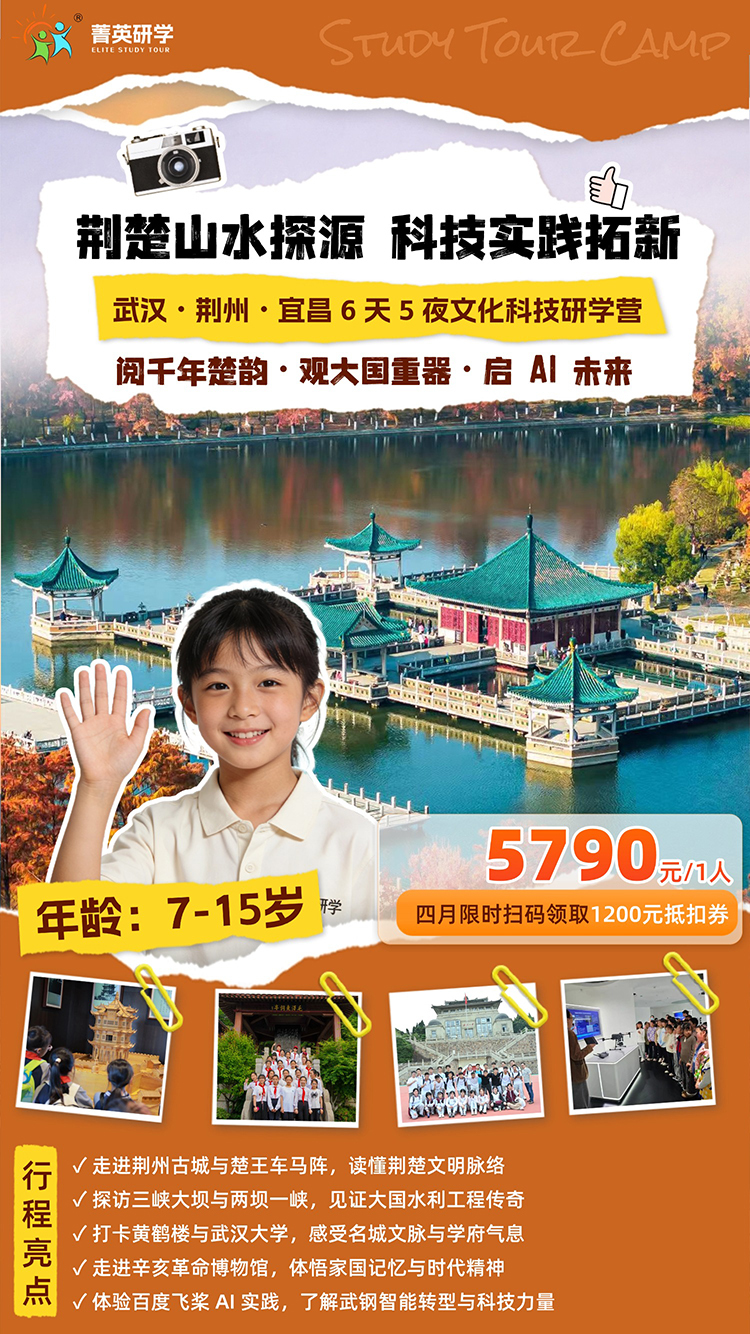 湖北楚文化是中国古代长江流域的重要文化之一,起源于春秋战国时期的楚国(公元前 11 世纪至公元前 223 年),以湖北为中心,辐射湖南、河南、安徽等地。楚文化以其独特的风格和深厚的历史底蕴,成为中华文明的重要组成部分。它展现了长江流域文明的独特魅力,其浪漫、神秘的艺术风格和深厚的文化底蕴,至今仍为人们所推崇。此次研学活动,我们将深入湖北省腹地,前往武汉、荆州、宜昌等城市,从自然科学、生态文明、文学、艺术、音乐、军事、建筑等多重维度深入了解楚文化,增强文化自信。这不仅是对中国古代文明的探索,也是对现代生活的启示,它将帮助学生更好地理解历史、传承文化,并为未来的文化创新和社会发展提供宝贵的资源。