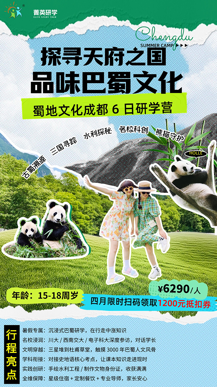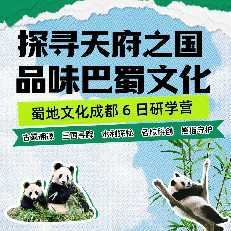 成都是人与自然共生的生态史诗——从古蜀先民铸就三星堆青铜神树诠释天地信仰,到都江堰以“道法自然”重塑水文格局;从川西林盘“田-林-宅”的千年生态智慧,到成都“雪山下的公园城市”践行绿色发展,四川始终是解码中国生态文明的密钥。本次研学立足天府之国,以“溯源-解构-预演”为路径:探秘都江堰水利工程,解析超算中心数字孪生技术,模拟龙泉山碳中和路径。通过历史遗存、科技现场与未来推演的三维碰撞,引导学生构建生态思维,为城市可持续发展提出青年方案,见证人类与自然共筑文明的永恒对话。