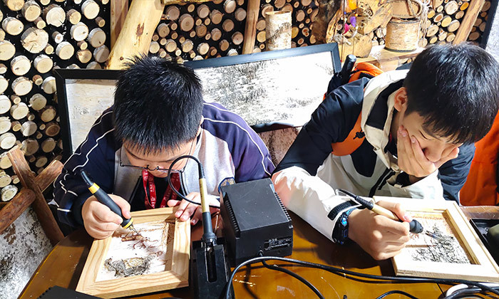 白桦树是北方最能激发人们想象力的树种。桦树皮是鄂温克人生活中必不可少的资源,更是他们创作的源泉。桦树皮具有良好的防水、防潮和抗腐蚀性能。鄂温克族妇女在春季剥下桦树皮,经过细心的选材加工,制作成精美的桦树皮篓、桦树皮箱、桦树皮盒和桦树皮碗等生活用品。今天我们将在非遗传承人宋老师的指导下独立完成一幅有创意的《桦树皮艺术画》,任指尖拂过天然的桦树皮纹理、那温润的质感,将使我们仿佛与森林深度联接。