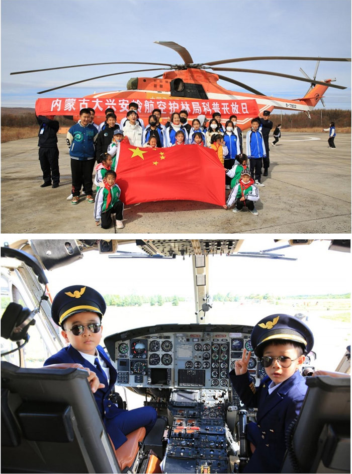 我们的课程有:探秘“航空护林”、解锁“飞行科学”、感受“神兵天降”、触摸“林海雄鹰”,重点是坐上直升飞机,真实地体验在大兴安岭的上空翱翔。我们将饱览大兴安岭林区独特的自然风光,高空下观看茂密的森林、蜿蜒的河流、错落的山丘。这将是一场震撼的空中视觉盛宴。