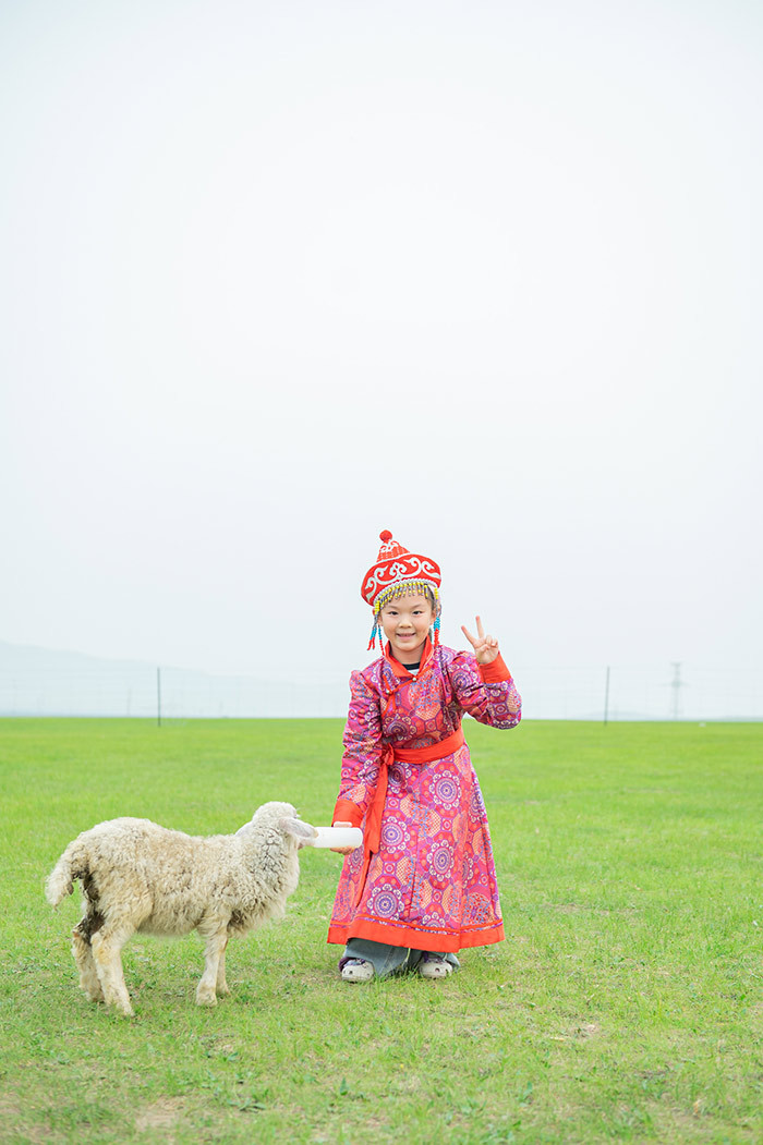 穿上蒙古袍喂小羊、拍美照,让我们变成游牧的蒙古人,亲近草原上的生灵,定格人与自然与草原上的小动物共生的和谐画面。
