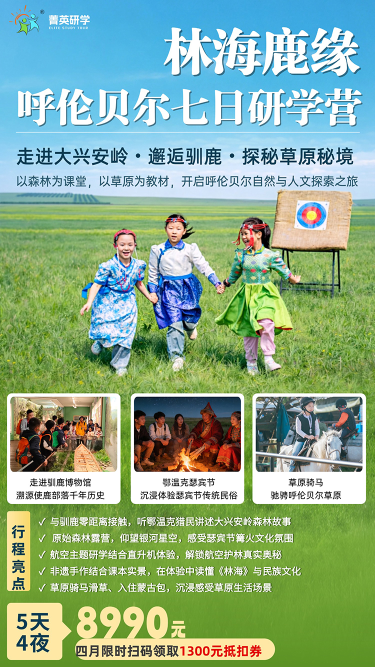 踏过晨霜覆雪的林间小径,追驯鹿踏叶的蹄印,听鄂温克族人讲山林的故事;望暮色漫过草原与林海的交界,拾一枚松塔藏起自然的密码,触一片苔藓感知生命的坚韧。这里没有标准答案,只有山林与心灵的对话,只有好奇与自然的相拥。