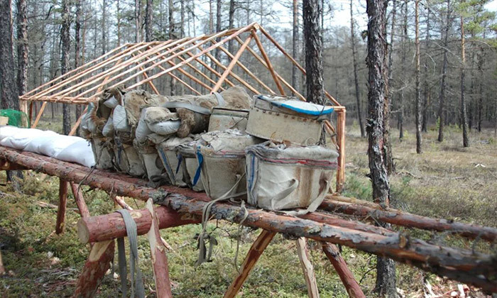 为了陪伴驯鹿,住在敖乡的鄂温克猎民还过着二元结构的生活,猎民仍然遵循“驯鹿逐苔藓而栖”的生活习惯,在森林里一年搬家好几次。