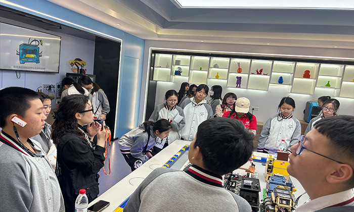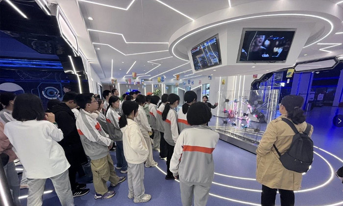 探看未来:走进机器人编队表演区,观看海陆空多维度机器人协同演示;随后进入芯片工厂,了解芯片从设计到封装的精密流程,聆听导师讲解技术突破与行业前景。