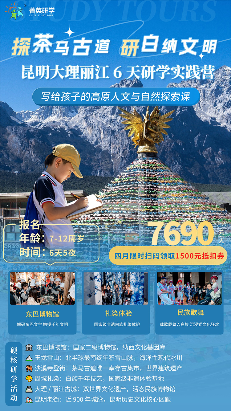 作为南诏大理国历史遗存与茶马古道枢纽,可观察棋盘式格局与青石板路,从南门城楼、五华楼等建筑中读懂古代城池规划智慧。这里更是白族文化的集中展示地,“三坊一照壁” 民居的木雕、彩绘,探究地域建筑与民俗的关联;参与扎染、甲马拓印等非遗体验,品味三道茶 “一苦二甜三回味” 的哲理,可深度感知民族文化的传承脉络,培育历史认知与文化认同。
