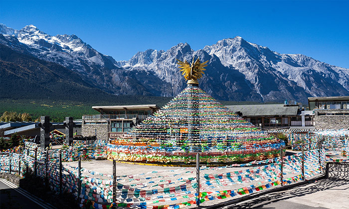 玉龙雪山又称“玉龙山”,位于云南省丽江纳西族自治县城西北,为横断山脉云岭主峰,由十二座山峰组成。主峰扇子陡,海拔5596米,峰顶终年积雪。山坡多云南松、冷杉等林木,每当春秋季节,风景秀丽,百花齐放。为国家级风景名胜区。玉龙雪山以其壮丽绝伦的自然风光和独特的纳西文化而闻名于世。