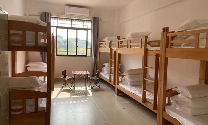 住宿标准:8-10人间宿舍,上下铺,有空调,独立卫浴,蹲便