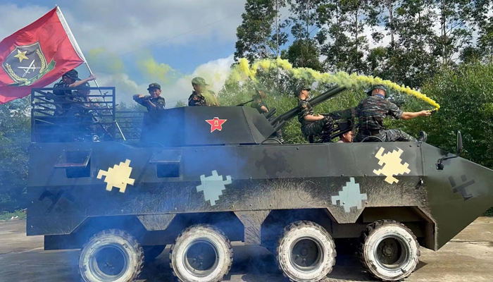 乘坐装甲车全副武装弛聘在陆地上, 穿过硝烟弥漫的战场,体验战场出征,感受现代化武器的震撼。
