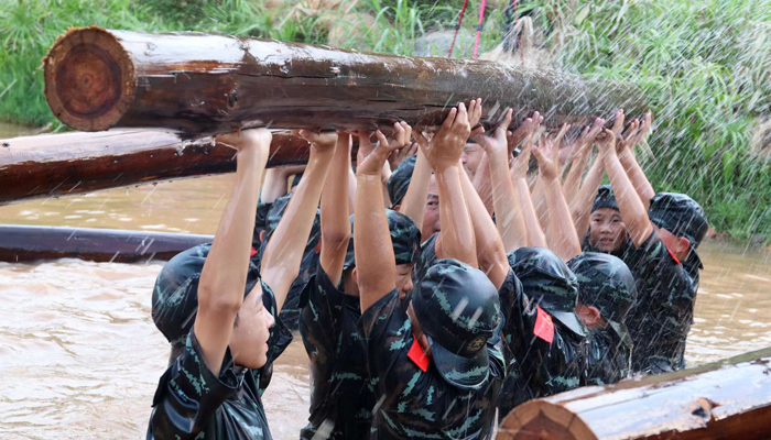 穿上战术背心戴上头盔抹上迷彩油,和战友并肩为了取得胜利在枪林弹雨的丛林中与蓝军对抗,为了队伍的胜利丝毫不敢怠慢咬牙坚持负重前行。在没过胸膛的水潭中,一根圆木压在一排小小的肩膀上,教官一声令下小战士们呐喊着必胜的口号一遍遍的举过头顶!少年,这是你该有的模样!