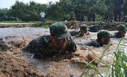 ◆ 单兵战术特训: (一)匍匐前进:低姿匍匐、高姿匍匐、侧身匍匐、高姿侧身匍匐; (二)观察、判定方位、通信联络、利用地形地物、伪装等单兵战术训练; (三)分兵器知识、射击学理、射击动作、测量距离和各种基本射击训练和应用射击训练。 ◆ 野营特训: 训练行军开进,疏散配置,隐蔽伪装、战斗勤务、野外食宿和进行各种课题的单兵战术特训等。 |