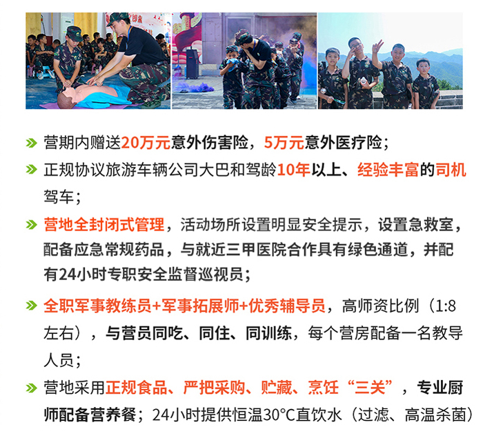 ★军事训练+行为习惯训练:通过军事化的行为训练,由外向内渗透,彻底解决内心不良根源,达到身心合一,想到就可以做到,从而达到自律;