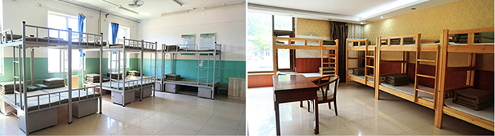 住宿标准:标准军营营房8-12人间,军用四件套、24小时空调、脸盆等