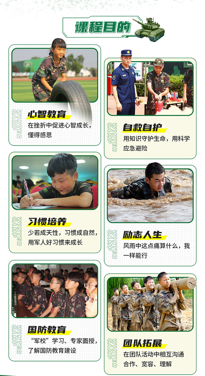★军事训练+行为习惯训练:通过军事化的行为训练,由外向内渗透,彻底解决内心不良根源,达到身心合一,想到就可以做到,从而达到自律;