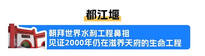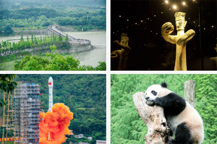 成都、三星堆博物馆、三星堆青铜艺术坊、都江堰中华大熊猫苑、都江堰水利工程、西昌、邛海、西昌卫星发射中心