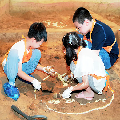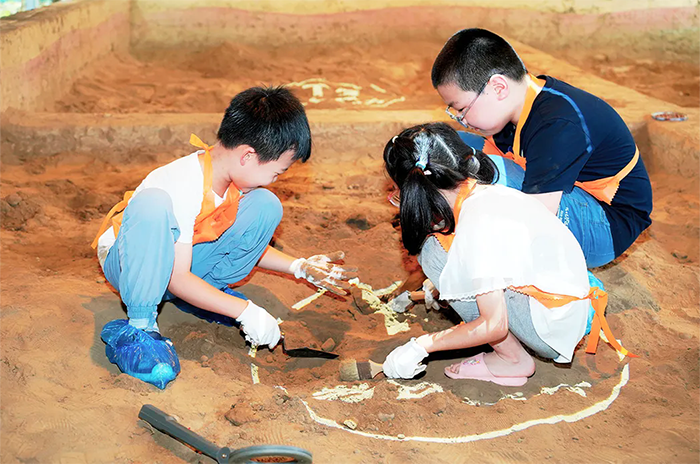 在模拟的考古探方里,孩子们拿起手铲、毛刷,化身为小小考古学家,轻轻刷开历史的尘埃,见证一件件“文物”在手下重现