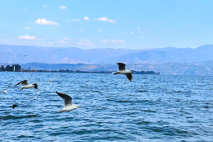 到邛海岸边白鹭点水的静谧光阴