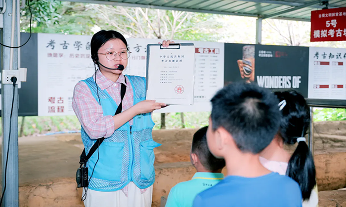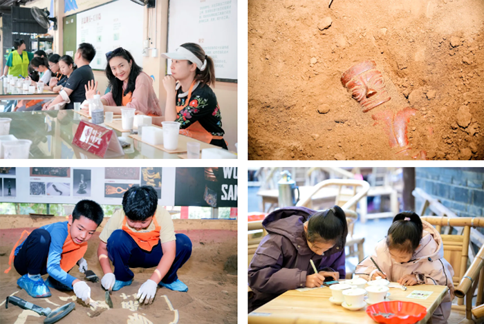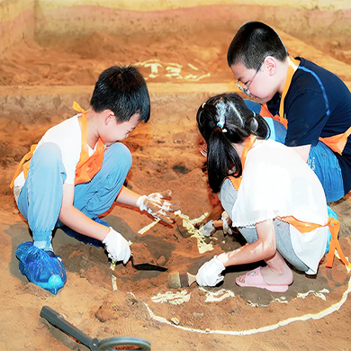 在真实复原的考古坑中,亲手操作手铲、刷子等专业工具,经历从勘探定位到文物提取的全流程,体验考古发掘