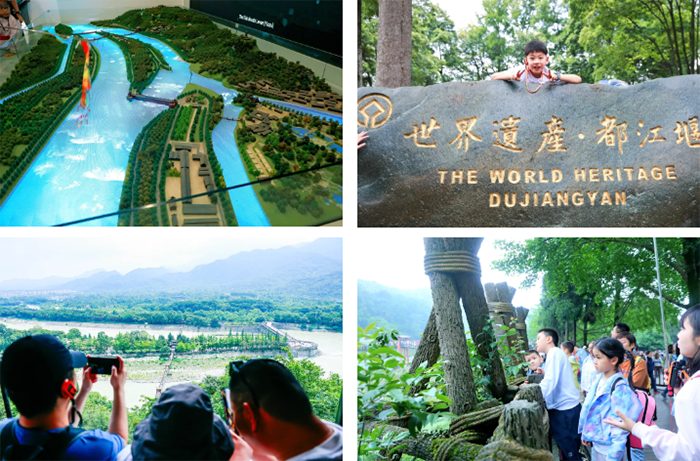 它是一本长达2281年的《水利教科书》,以「四六分水,二八排沙」的方式,首次实现了“无坝引水”双效益系统,使成都平原成为“天府之国”。在这里我们将跟着研学导师从时代背景到工程原理系统地探索千年水利工程都江堰,了解都江堰的「工程结构」「水流走向」「功能分区」