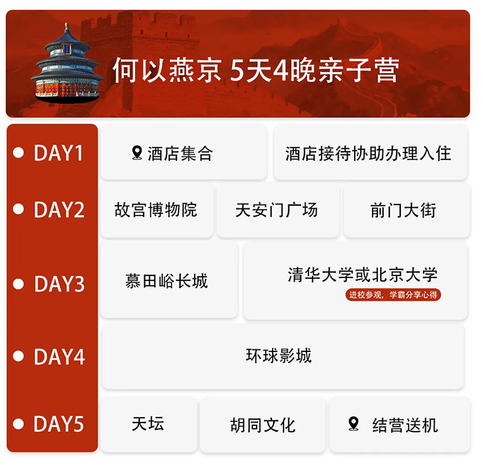 特别注意:根据实际情况选择清华大学或北京大学参观,清华大学和北京大学作为我国知名学府,非常规旅游景点;如学校因重要接待、学术交流等活动实施政策性管控,因而入校时间为随机分配,涵盖白天及晚间场次