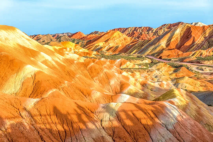 张掖七彩丹霞,世界地质公园,世界十大神奇地理奇观之一,是国内唯一的丹霞地貌与彩色丘陵景观高度复合区。发育于一亿年前白垩纪时的“红层”,经构造运动流水与风力侵蚀而成,极具地质科考价值。