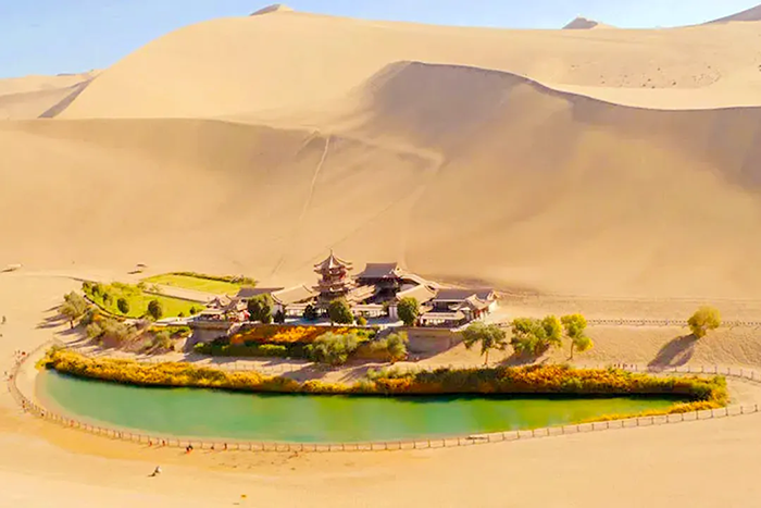 沙漠中的一湾清泉,因“泉映月而无尘”、“亘古沙不填泉,泉不涸竭”,成为敦煌可以与莫高窟相提并论的塞外奇观。相传玄奘西行便走过这片神奇的沙地。