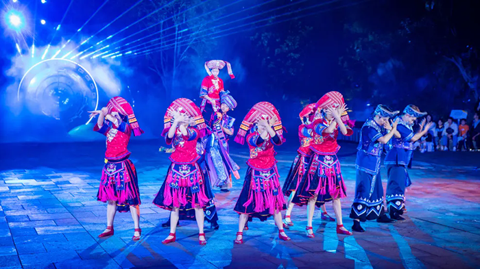 绚丽多彩的灯光从前广场一路沿线点亮至大瀑布,与远山近景相映成趣