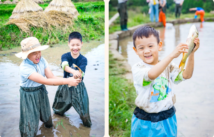 卷起裤脚光着脚丫来一场抓鱼比赛~
