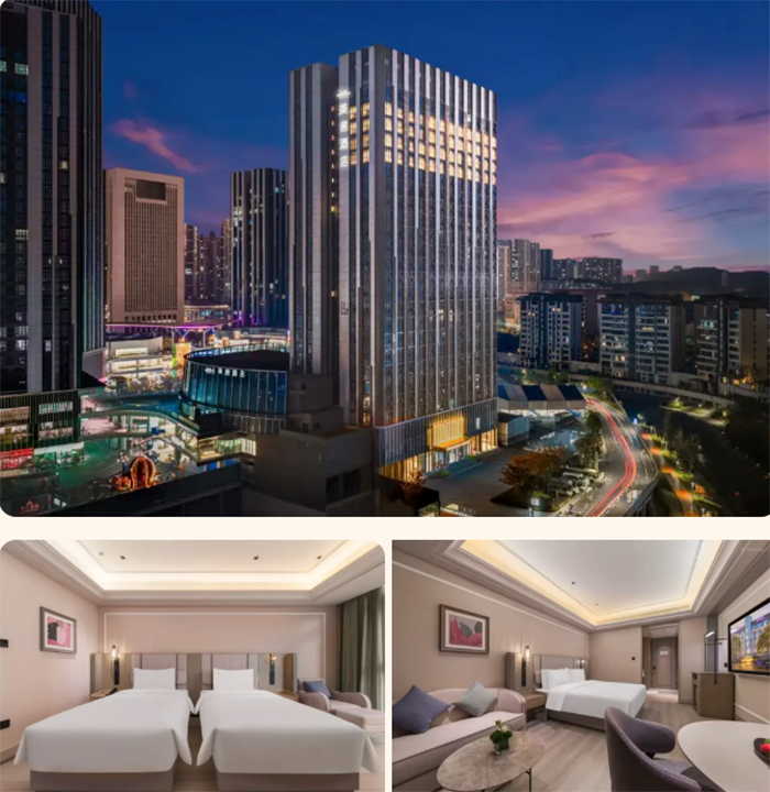 贵阳观山湖会展中心美居酒店,携程4钻,酒店设施崭新,配套齐全,落址于美的置业广场,楼下就是综合体,吃饭、逛街都很方便,位置也很便利,距离贵阳北站仅4.5公里。
