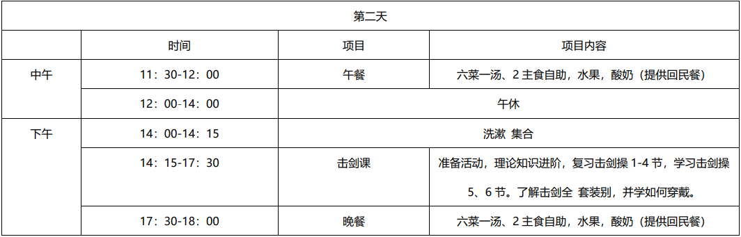 师资配比:击剑课程1对8教学,其他活动师生配比不低于1:6,确保对营员教学辅导和生活关照到位。